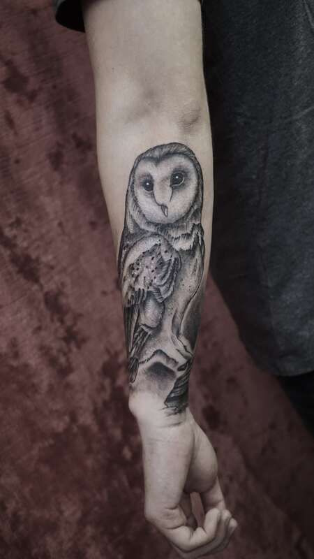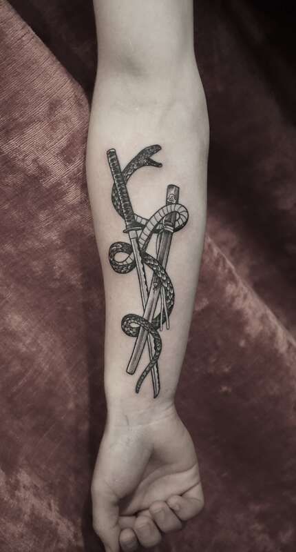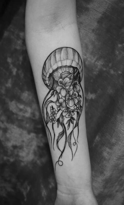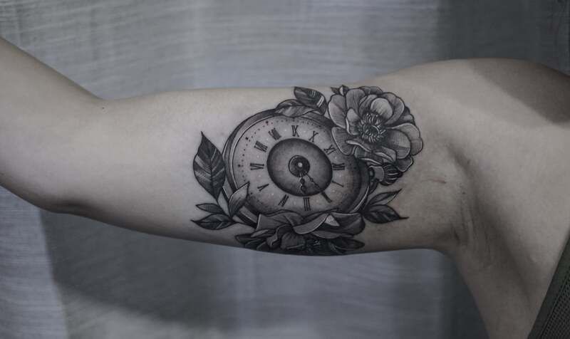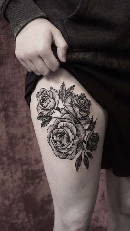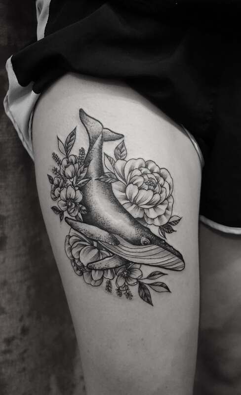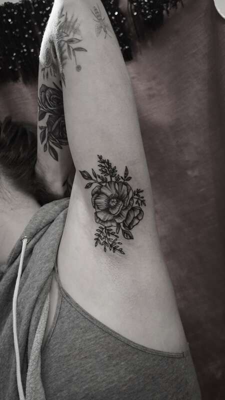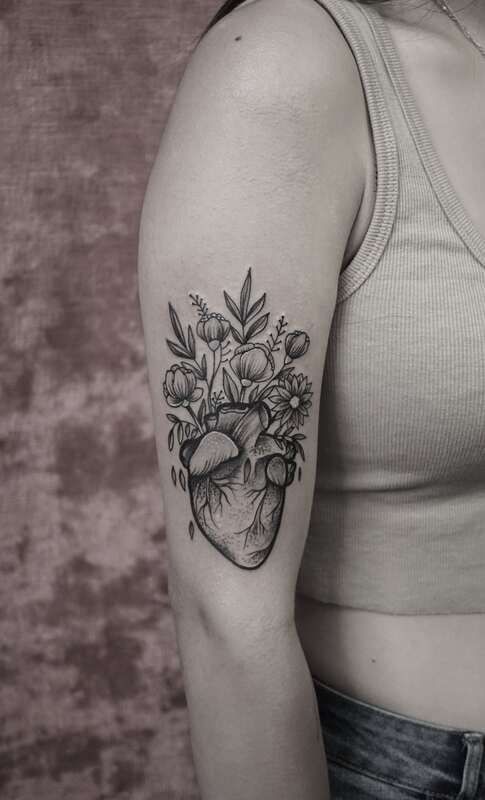 I'm very lucky to have the opportunity to work with great artists like we have here at Mission Ink. I love doing floral and black and grey tattoos... (ps. A foto e meio antiga...),
